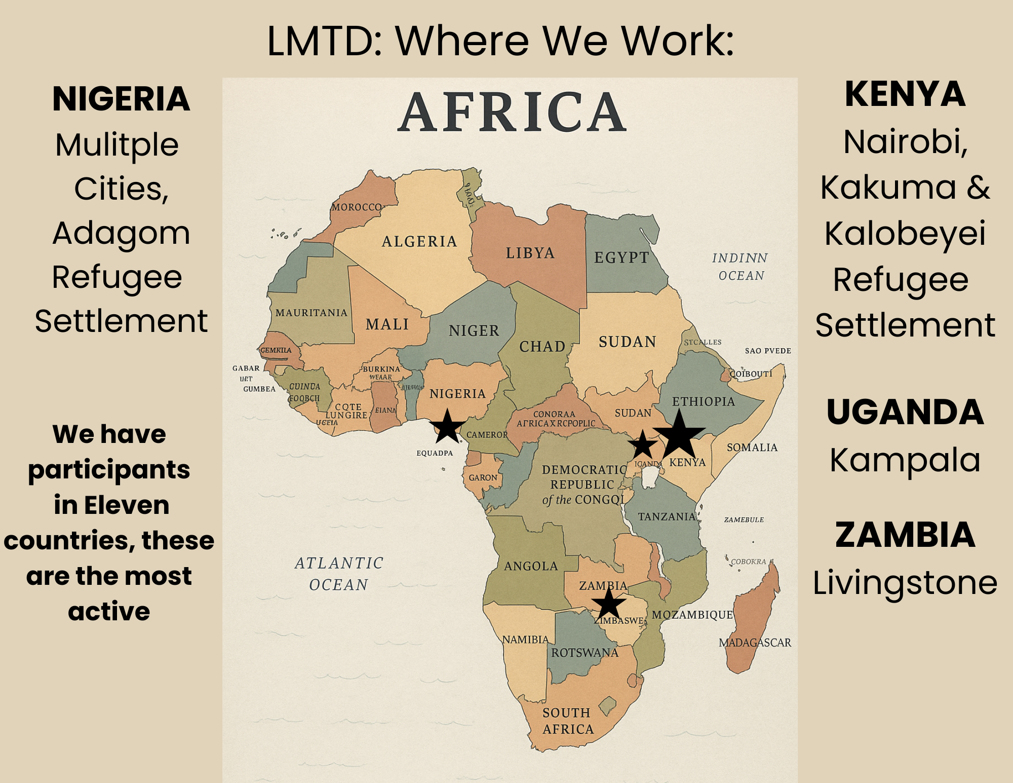 We are most active in the Kakuma and Kalobeyei Refugee Settlements in Kenya, and Adagom in Nigeria.